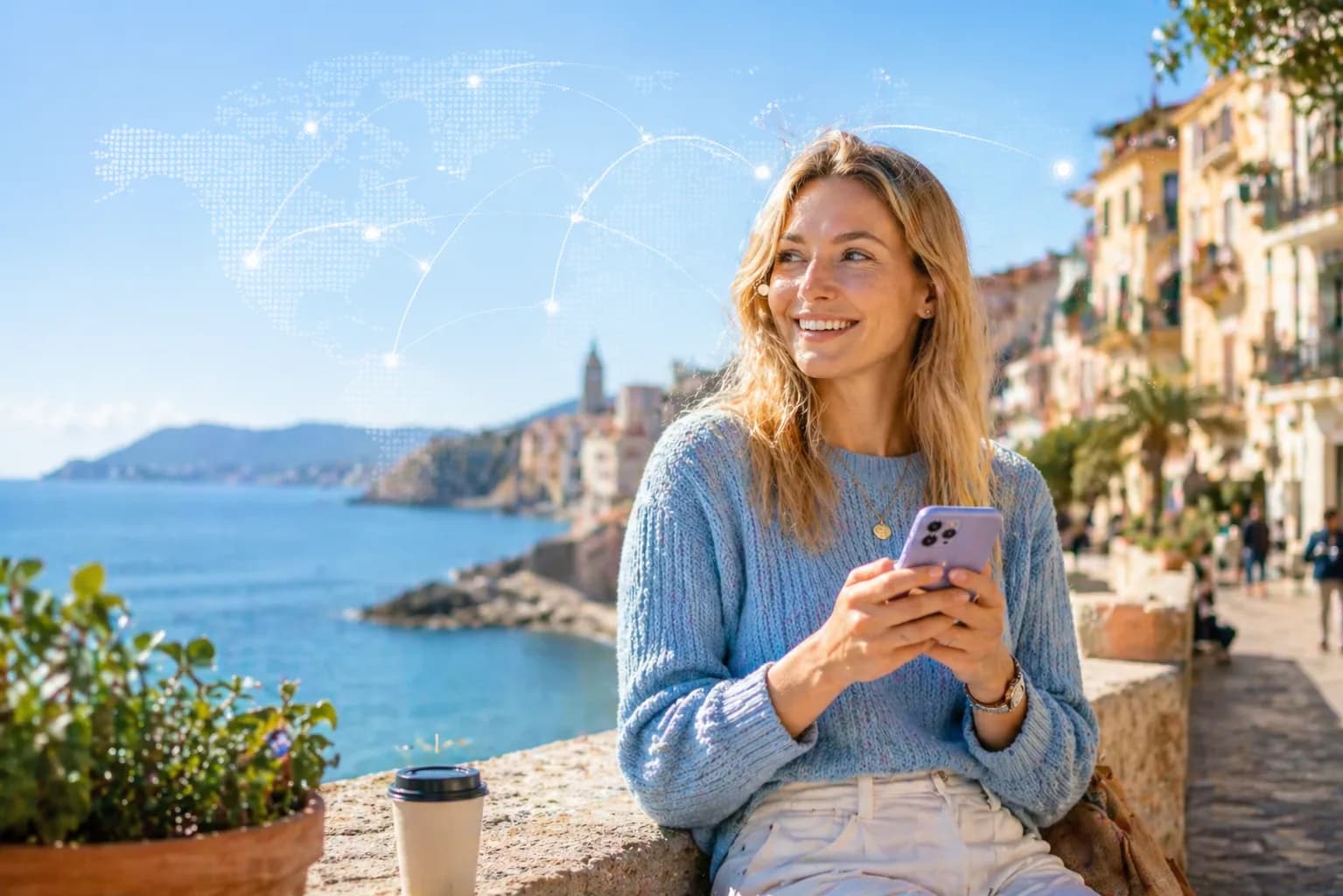 Conéctate al instante en más de 190 países. Sin cambiar de SIM, sin complicaciones.